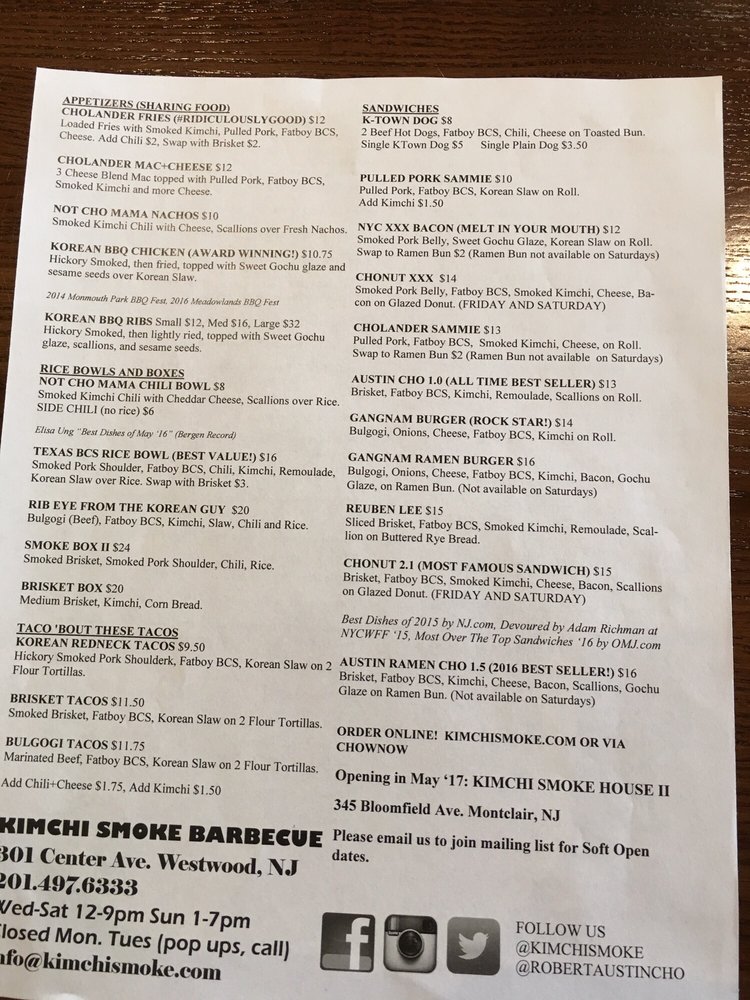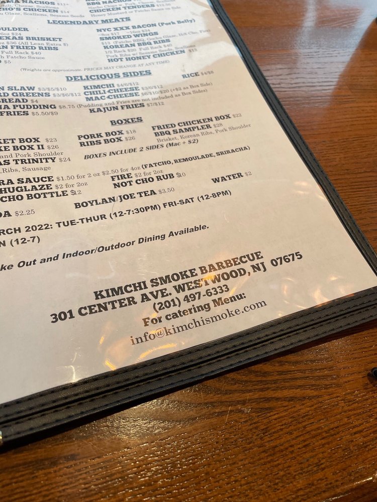 Welcome to Kimchi Smoke BBQ Shack, a cozy eatery located at 2 Godwin Ave, Ridgewood, NJ, where Korean flavors meet soulful Southern BBQ. Their menu boasts an impressive array of sandwiches, tacos, and hearty boxes, all featuring legendary meats that are expertly smoked for 12 hours. Try the NYC XXX Bacon—a perfectly juicy pork belly or dig into their award-winning Bad as Texas Brisket. The tacos are a must-try, offering unique combinations like the Austin Cho Tacos with smoked brisket, kimchi, and Fatcho sauce, all wrapped in soft corn tortillas.